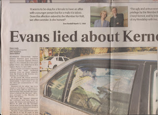 `It seems to be okay for a female to have an affair with a younger person but for a male it is taboo. Does this affection extend to the Member for Holt (Gareth Evans), we often wonder. Is she honest?’