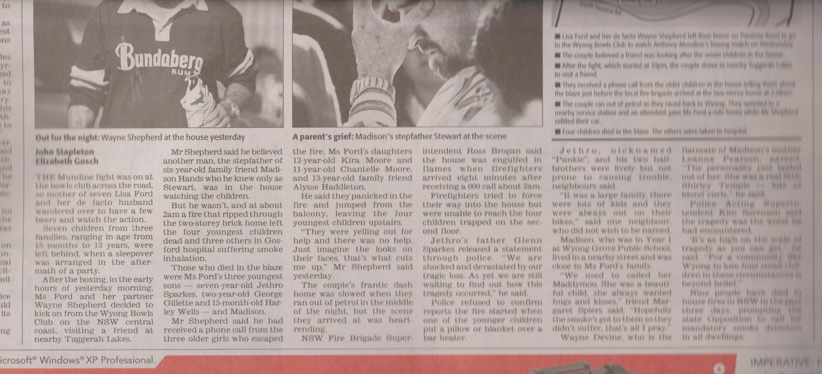 THE Mundine fight was on at the bowls club across the road, so mother of seven Lisa Ford and her de facto husband wandered over to have a few beers and watch the action.