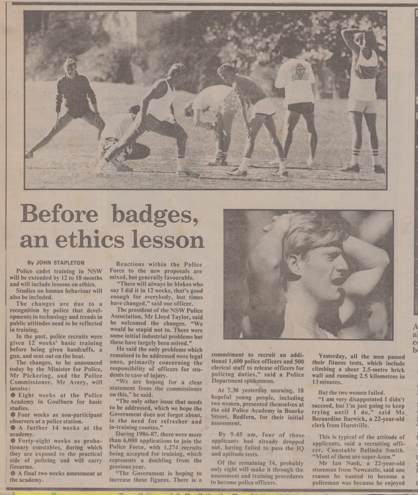 Before badges, an ethics lesson, Sydney Morning Herald, 13 May, 1988