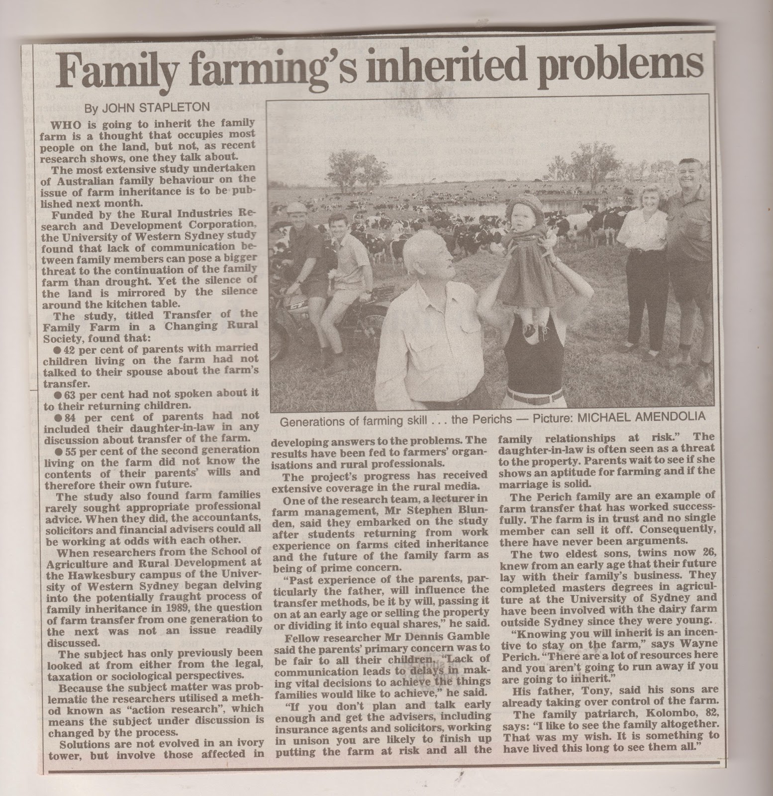 Family farming’s inherited problems, The Weekend Australian, 28-29 January, 1995.