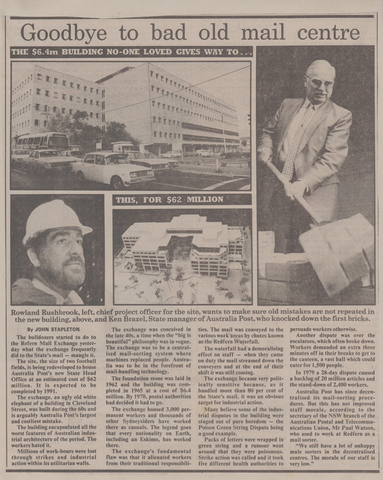 Goodbye to bad old mail centre, Sydney Morning Herald, 29 April, 1988.