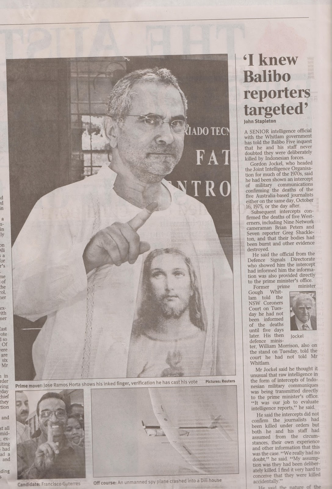 Mr [Gordon Jockel] said he thought it unusual that raw intelligence in the form of intercepts of Indonesian military communiques was being transmitted directly to the prime minister’s office. “It was our job to evaluate intelligence reports,” he said.