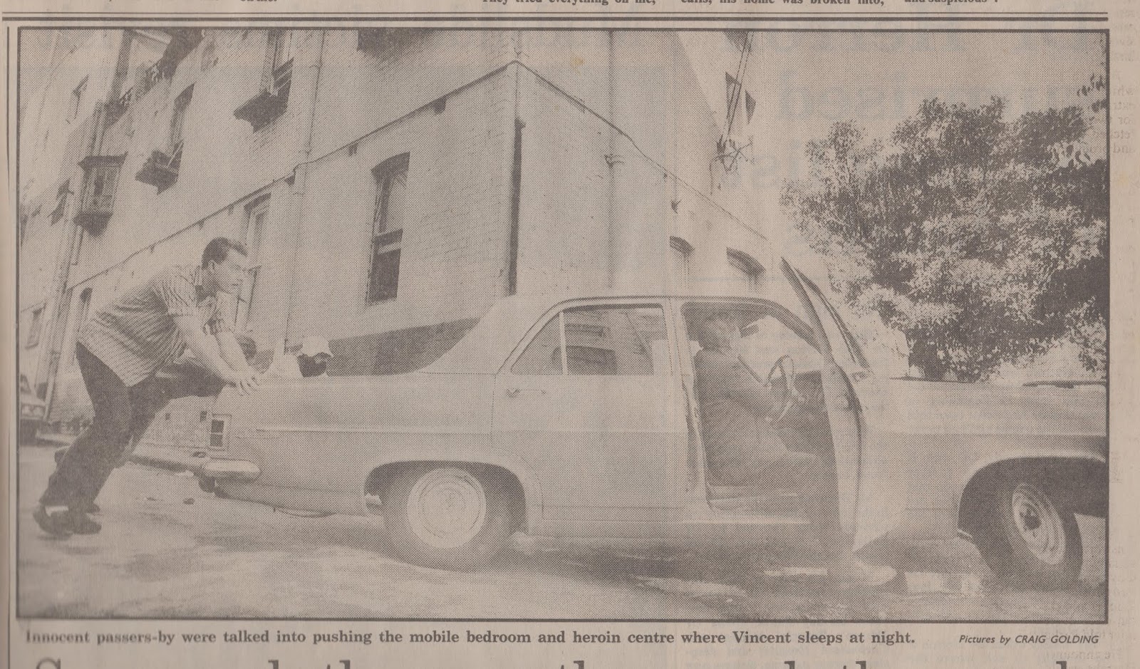 Some push the car, others push the smack, The Sydney Morning Herald, 12 May, 1989. Pic Craig Golding.