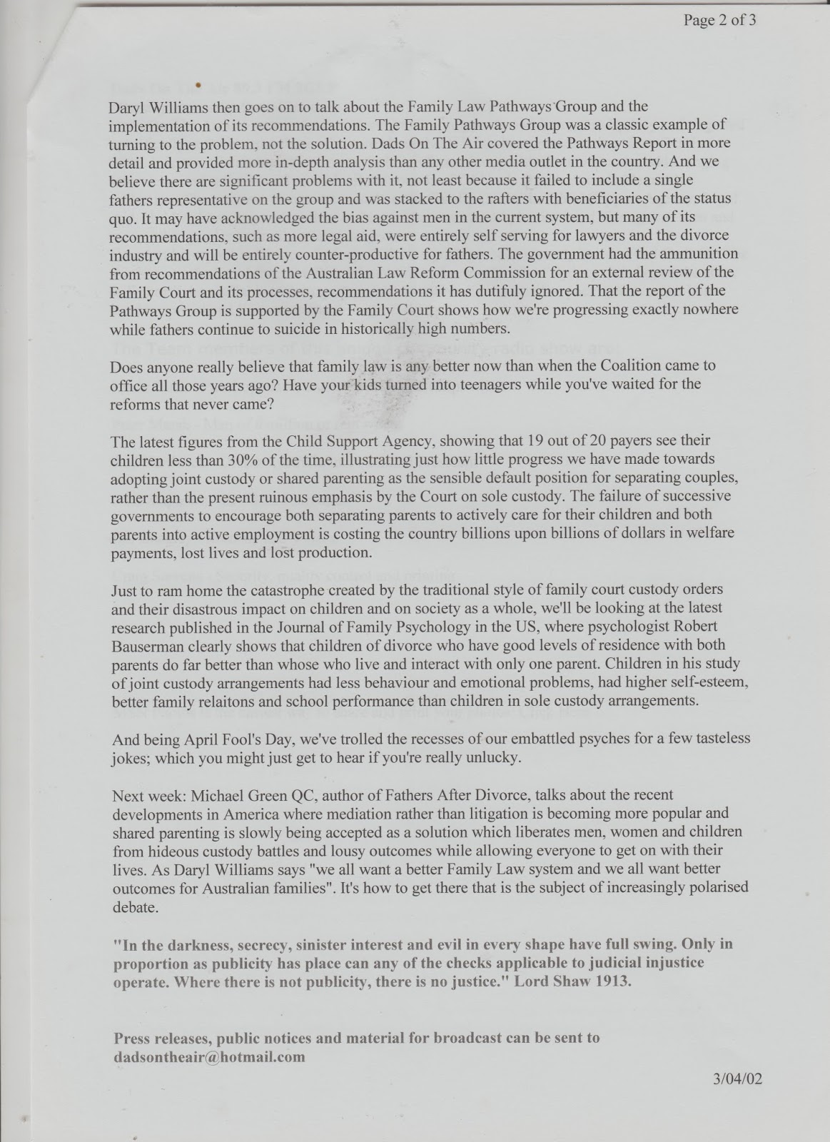 Stay Away From The Court: So Says The Attorney General, So Say All Of Us, Dads On The Air, 1 April, 2002. Read More » April 1, 2002