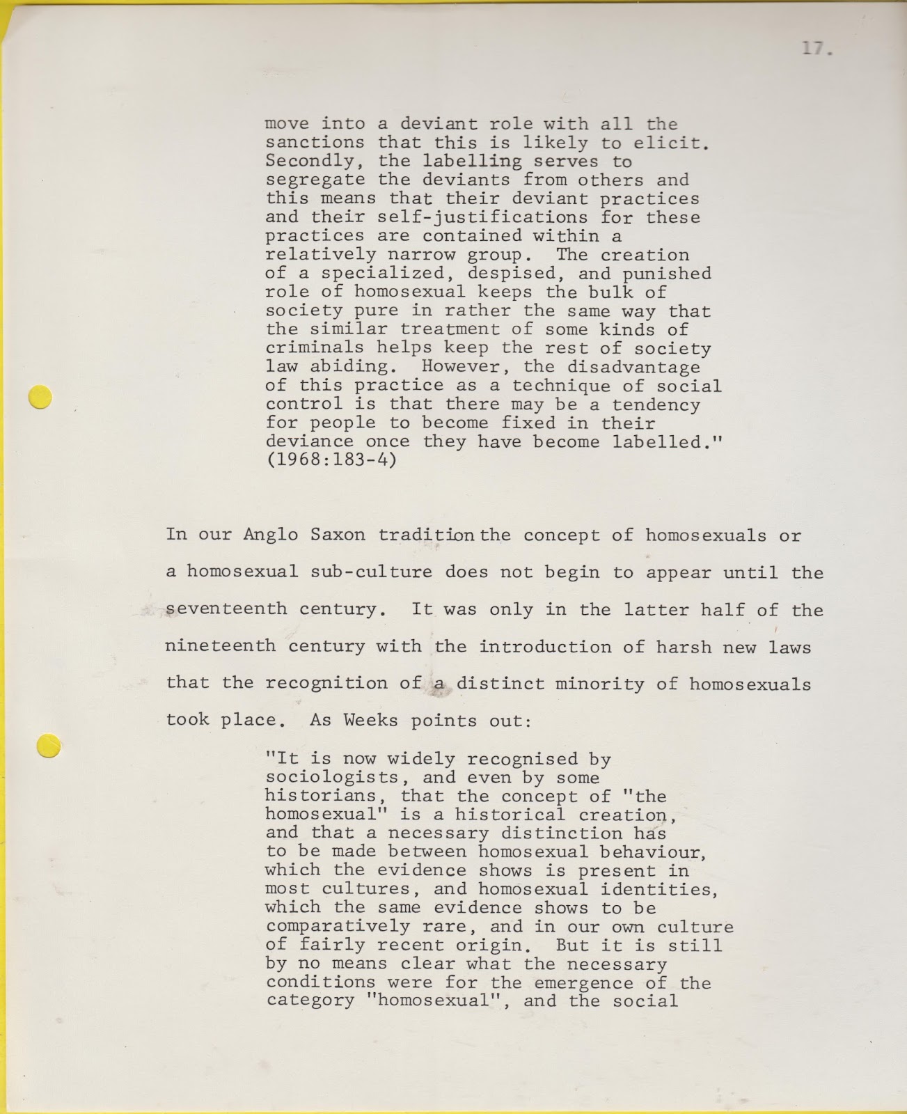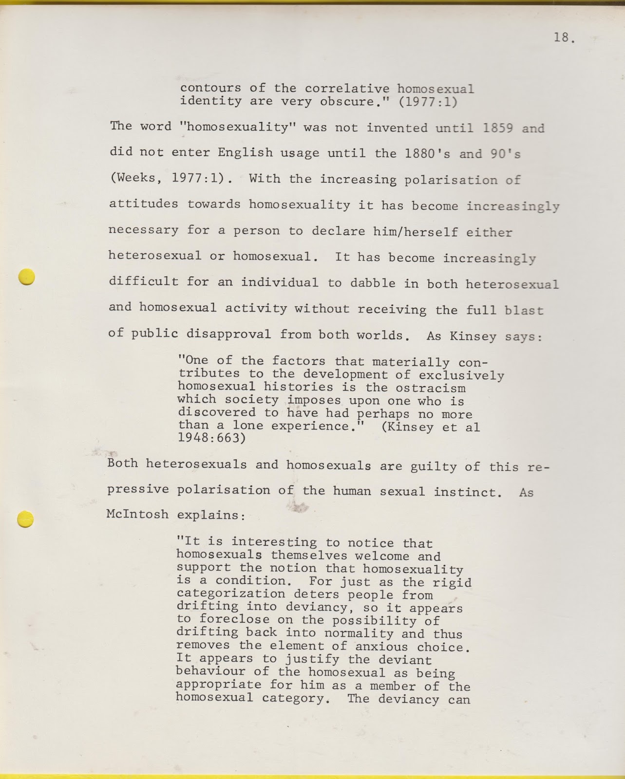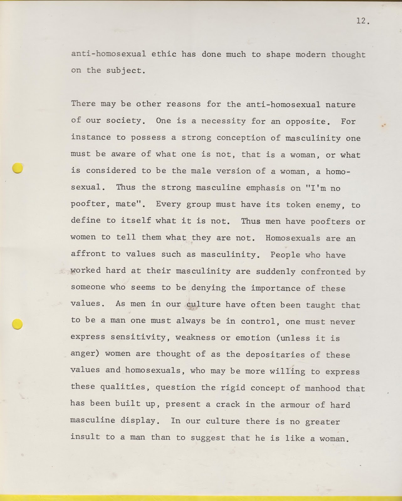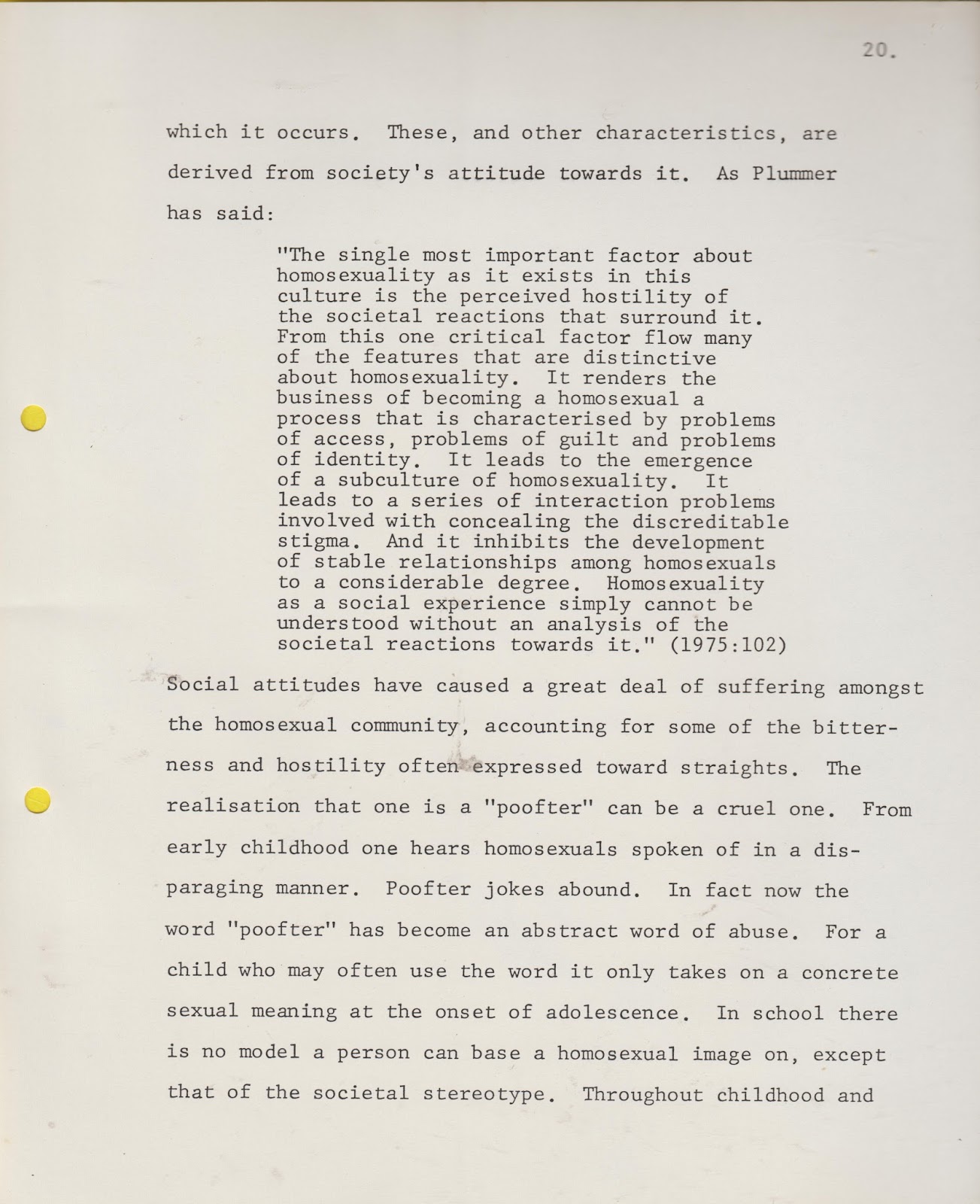 The Glamour and the Grot, Towards an Ethnography of the Gay Bars of Adelaide. Sociology Thesis. November, 1978. Pages 11-20.