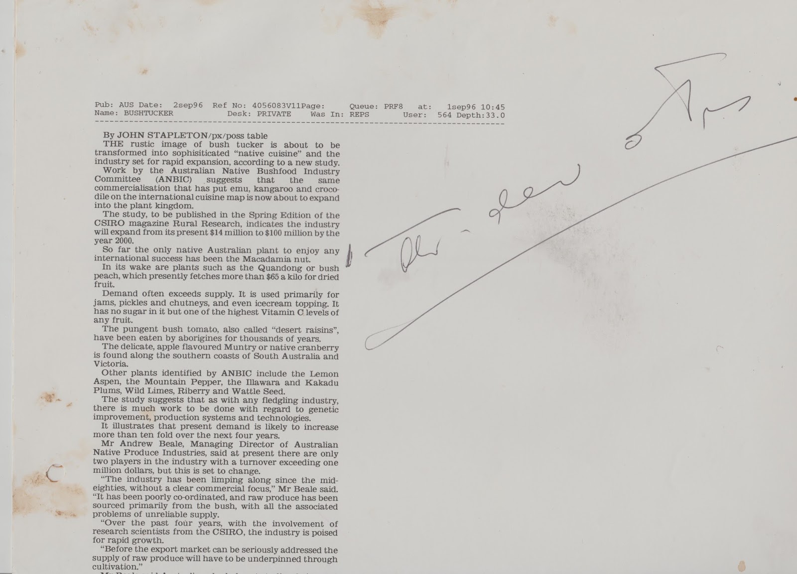 The rustic image of bush tucker, Original Copy, The Australian, 2 September, 1996.