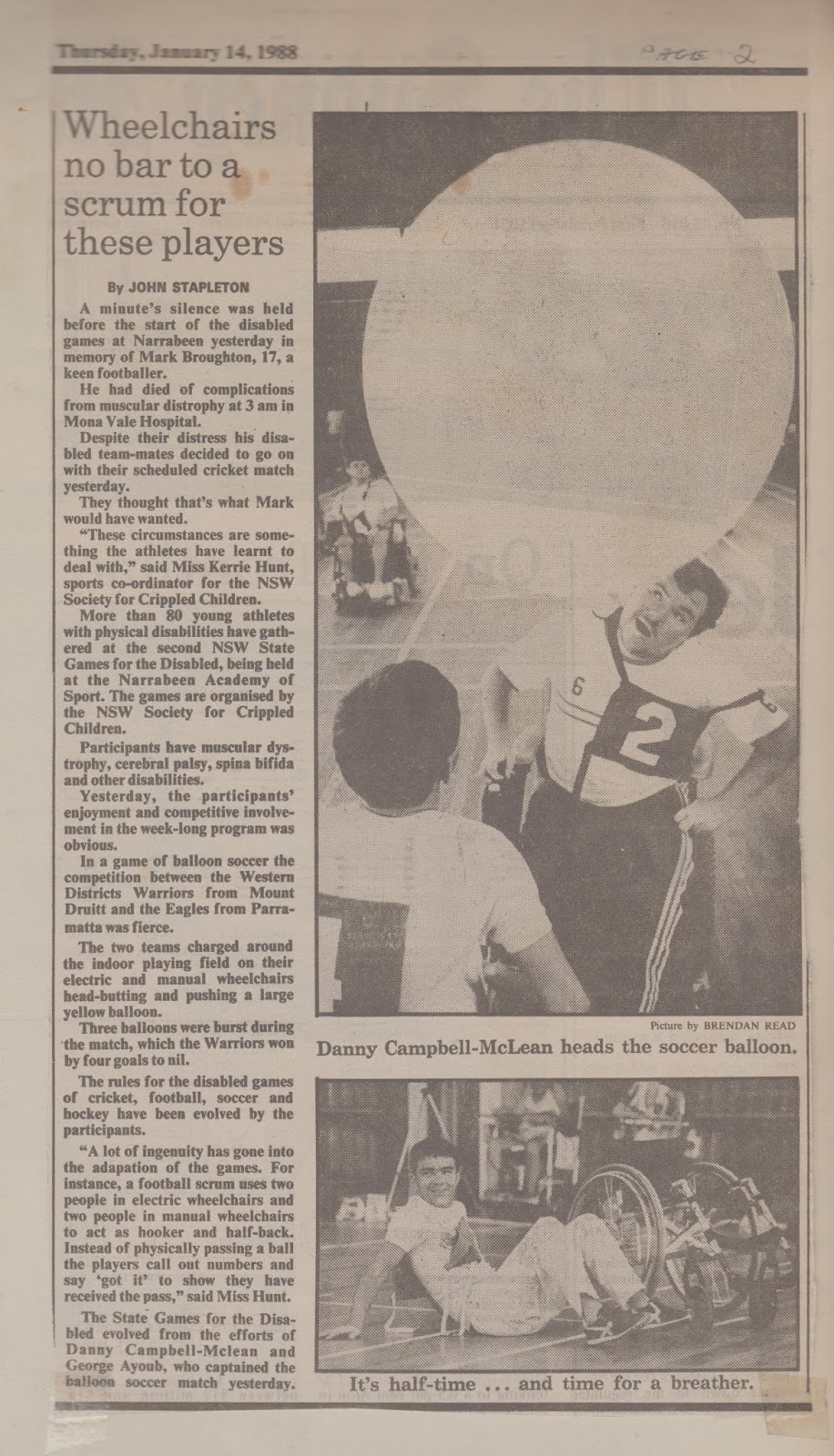 Disabled games, high-spirited fun, The Sydney Morning Herald, 15 January, 1990. Read More » January 15, 1990
